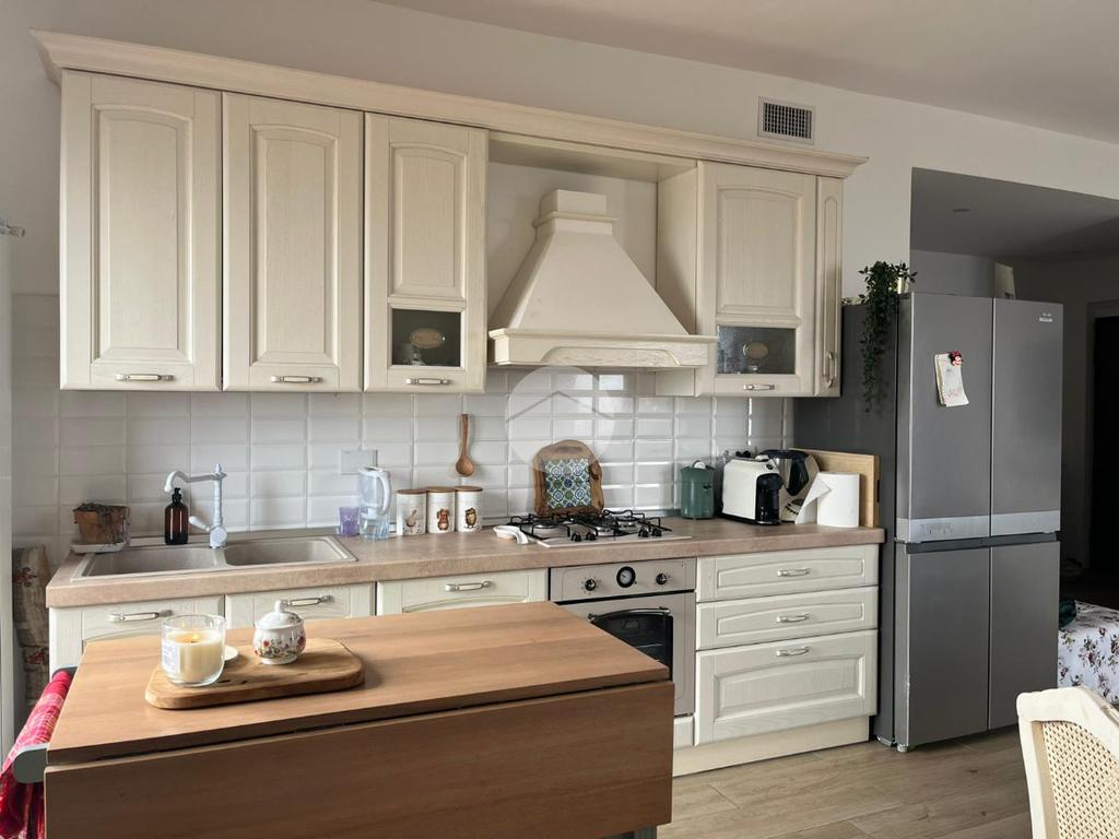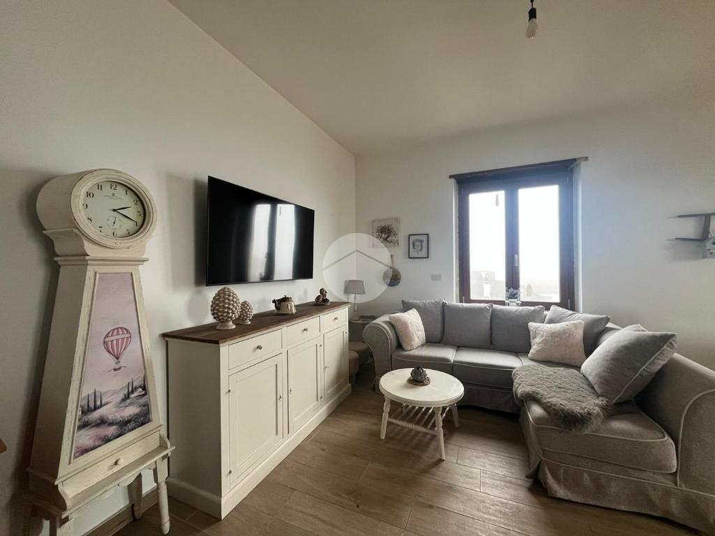 L’abitazione gode di esposizione su quattro lati, garantendo luminosità naturale durante tutta la giornata. La zona giorno è ampia, accogliente me dotata di camino, con cucina a vista e accesso diretto ai balconi, dai quali si può apprezzare una piacevole vista panoramica.